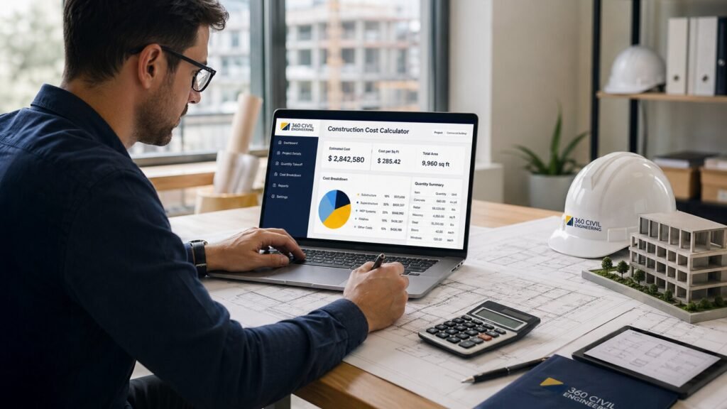 A Construction Cost Calculator is an online estimating tool that helps homeowners, civil engineers, contractors, architects, quantity surveyors, and project managers calculate the approximate cost of a building project. It uses basic project information such as area, unit rate, floors, quality level, location factor, and cost percentages to generate a quick construction budget.